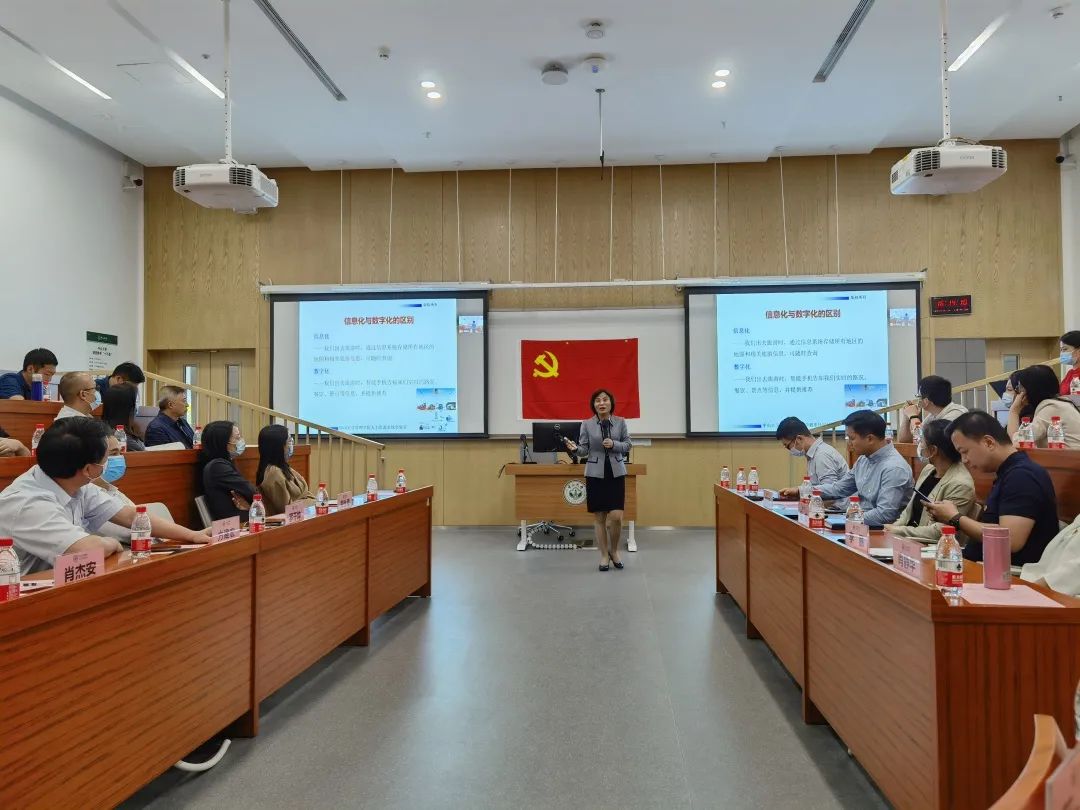 商学院全体师生与赛格集团党员代表落座西区公交楼教室,共同聆听专题辅导报告。
