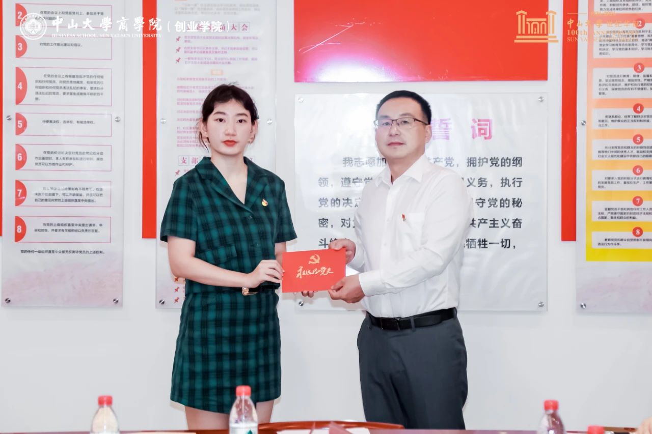在庄重的氛围中,龙长春代表党支部,将印制着党徽、书写着入党誓词和毕业寄语的纪念卡送到每位毕业生党员手中,勉励同志们怀揣初心使命开启人生新征程。