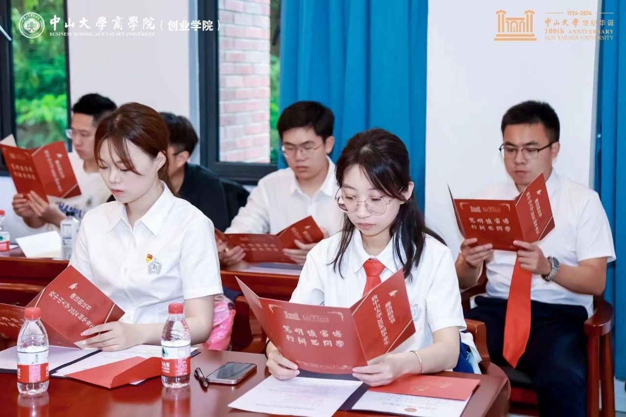 会议首先传达学习习近平总书记在中共中央政治局第十四次集体学习时关于促进高质量充分就业的讲话,随后对中山大学党委组织部《致毕业生党员的一封信》进行宣读与学习。在直属党支部书记龙长春的领誓下,全体党员重温入党誓词,一句句铿锵有力的誓词叩问入党初心,进一步强化党员的身份意识、宗旨意识和责任意识。