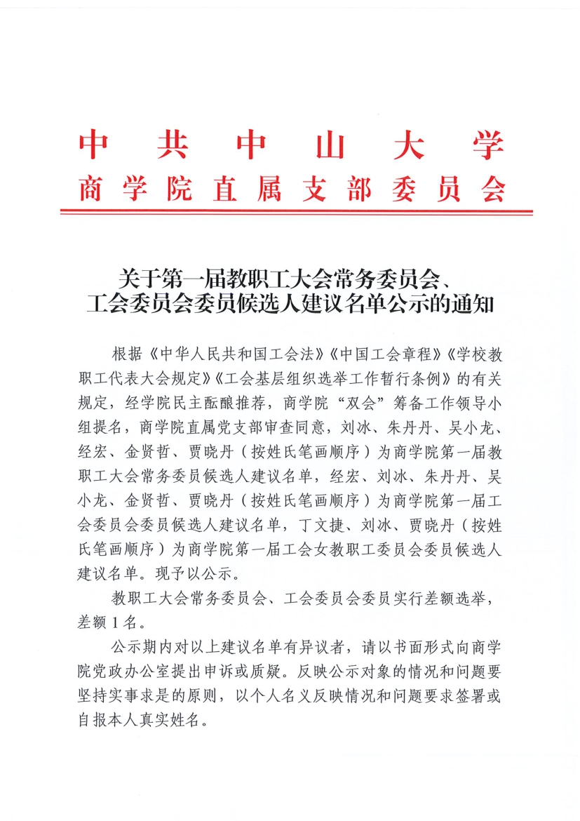 关于第一届教职工大会常务委员会、工会委员会委员候选人建议名单公示的通知