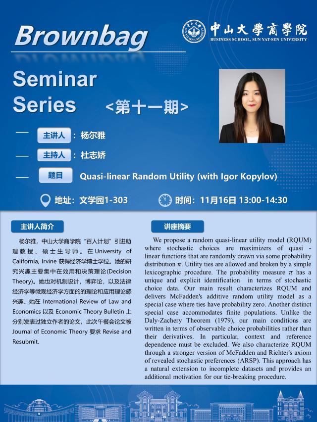 商学院第十一期学术交流午餐会预告