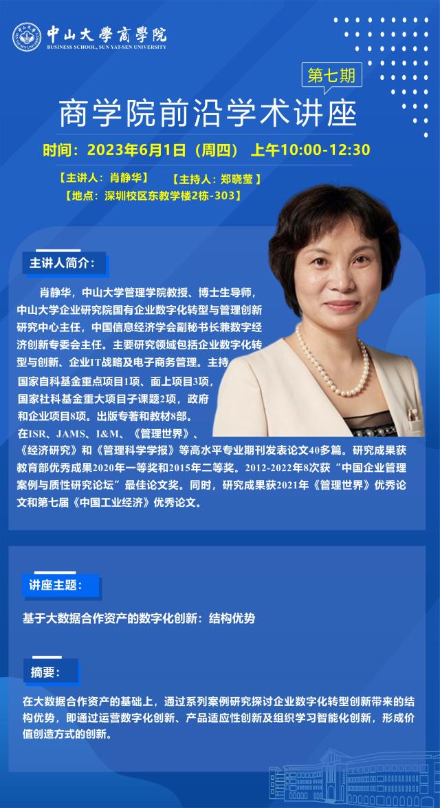 商学院前沿学术讲座第七期预告 | 主讲人:肖静华