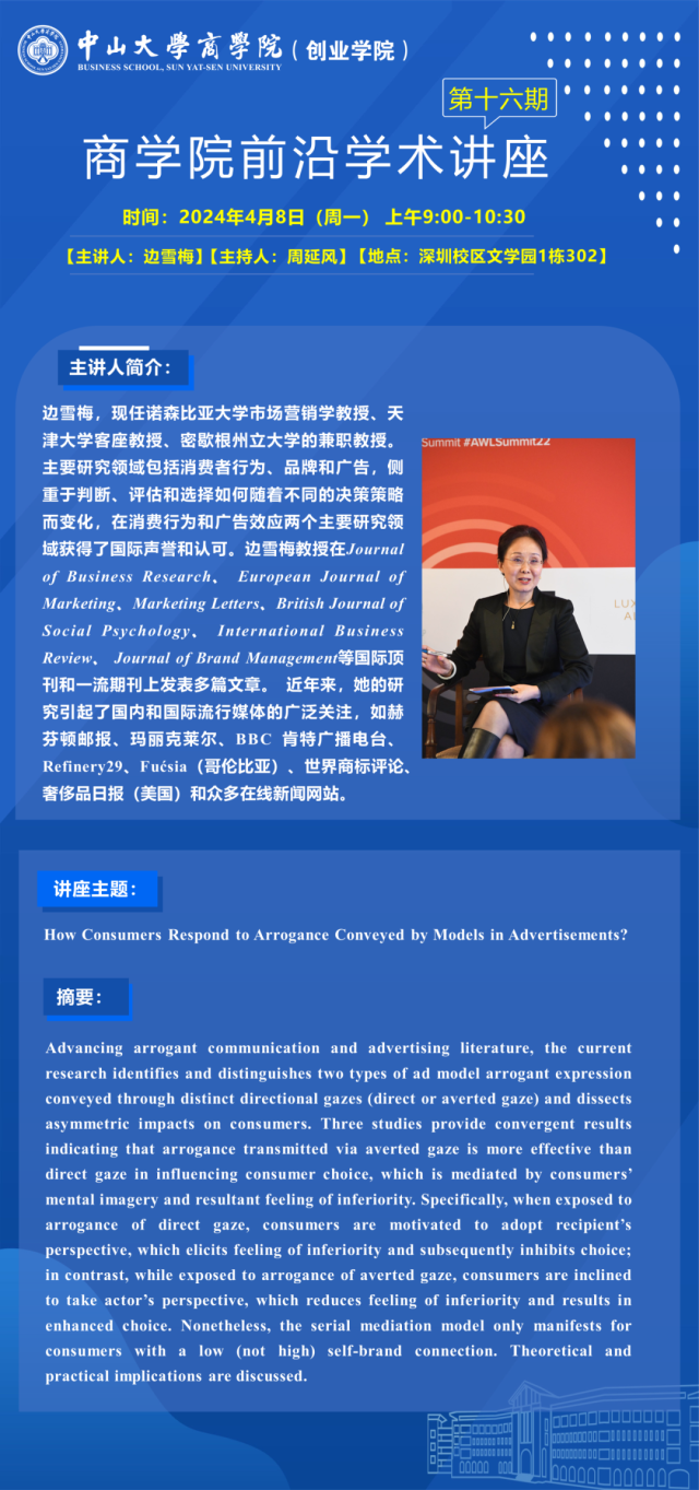 商学院前沿学术讲座第十六期预告 | 主讲人:边雪梅