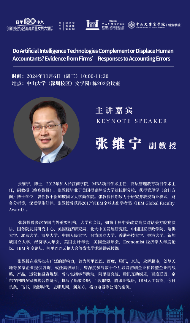 百年中大·创新创业与经济高质量发展大讲坛第9期暨前沿学术讲座第20期 | 张维宁