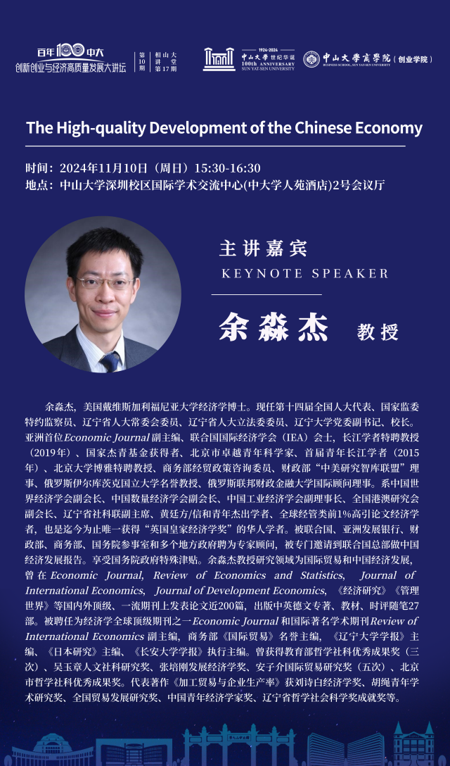 百年中大·创新创业与经济高质量发展大讲坛第10期暨相山大讲堂第17期 | 余淼杰