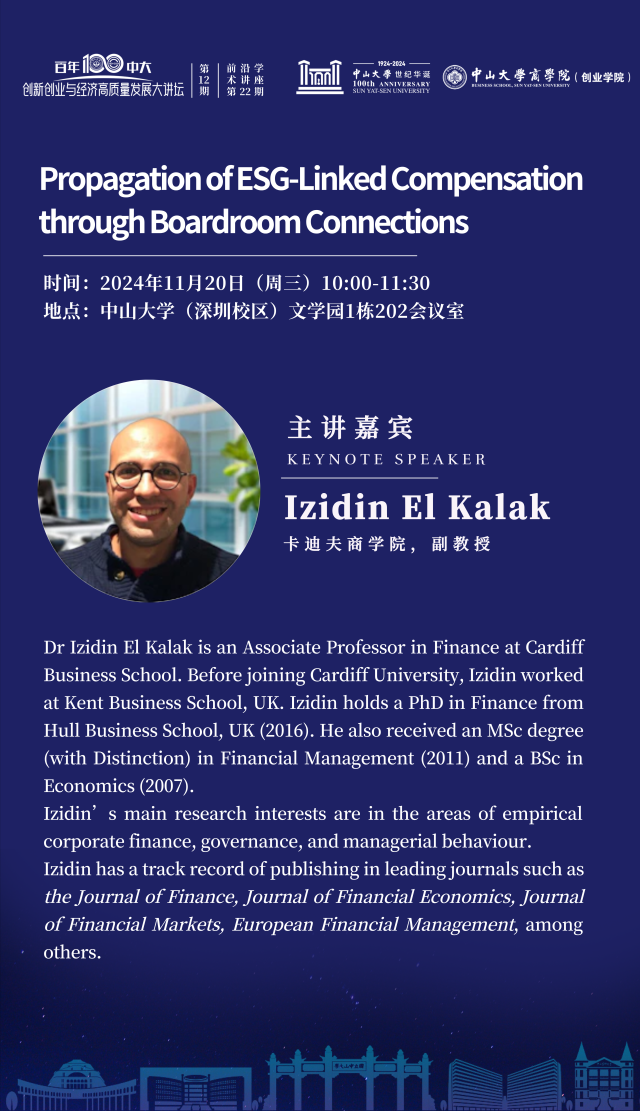 百年中大·创新创业与经济高质量发展大讲坛第12期暨前沿学术讲座第22期 | Izidin El Kalak