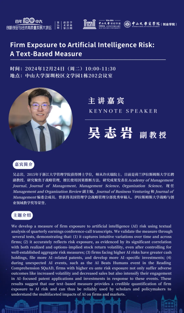 百年中大·创新创业与经济高质量发展大讲坛第16期暨前沿学术讲座第25期 | 吴志岩