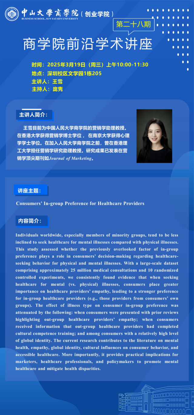 商学院前沿学术讲座第二十八期预告