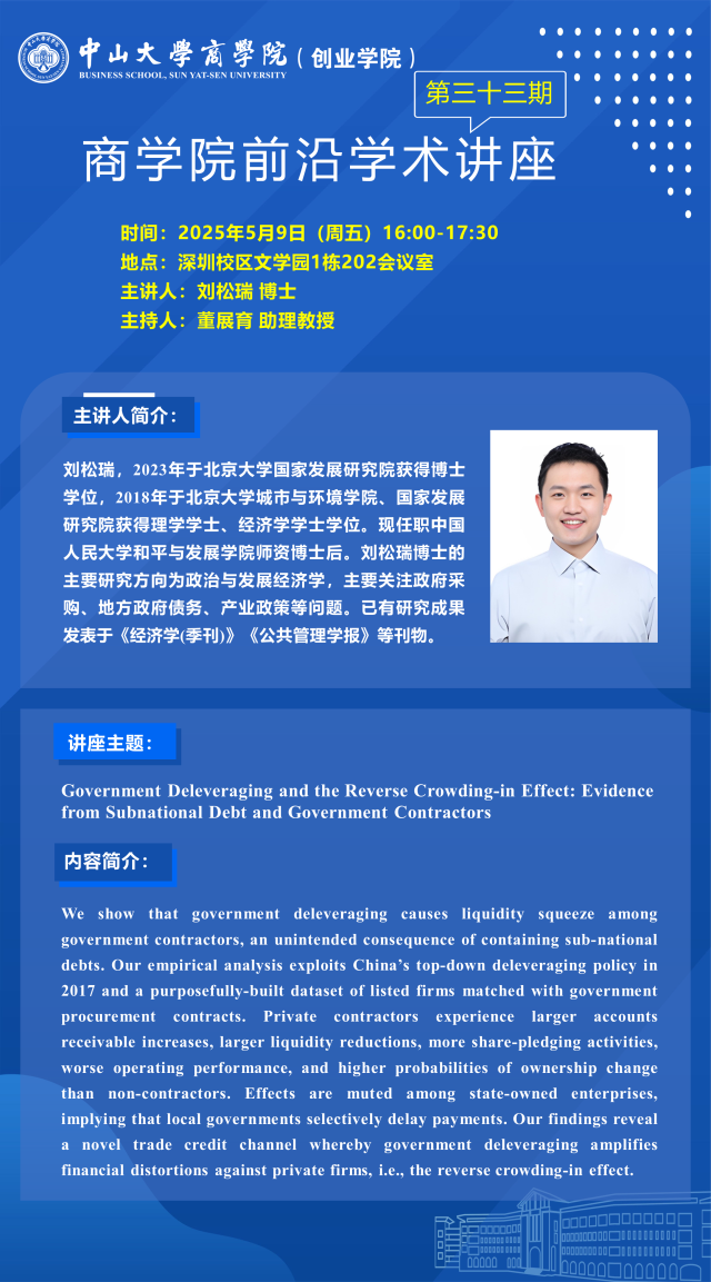 讲座预告 | 商学院前沿学术讲座第三十三期:刘松瑞