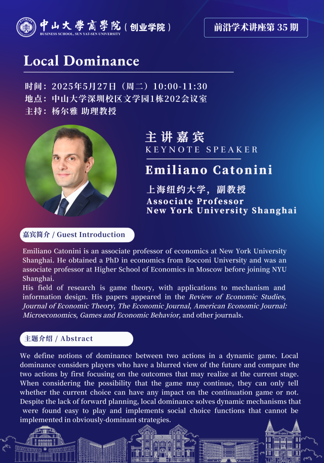 讲座预告 | 商学院前沿学术讲座第三十五期:Emiliano Catonini