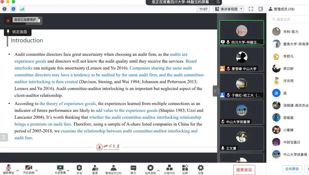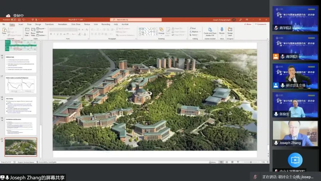 章红波教授就内审经理变更的重要性进行探讨,并分享了如何用中国的数据做一篇高质量研究的经验。此外,章教授通过展示中山大学深圳校区的规划图表达了对商学院发展的美好祝福。