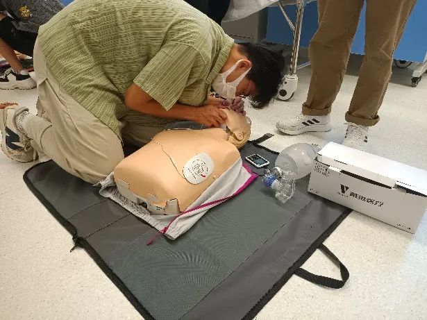 接着,同学们分组实操,进行心肺复苏模拟训练。医生和志愿者及时纠正同学们的不规范操作,指导大家如何判断胸外按压位置和按压强度,以及如何打开病人气道。通过“实战演练”,同学们受益匪浅,对心肺复苏救援的流程更加熟悉,也掌握了实施过程中的注意事项和动作要领。