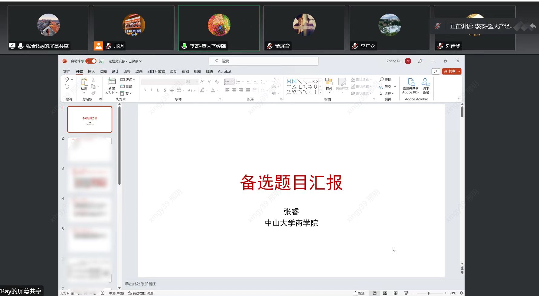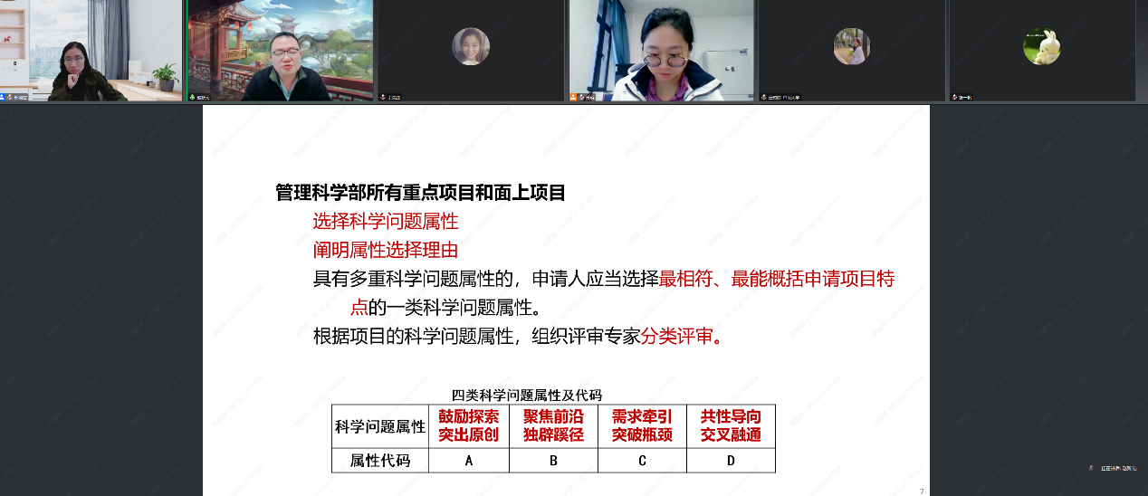 继2022年11月成功举办商学院2023年国家级项目申报动员会后,2023年1月15日上午,商学院召开2023年国家级项目申报选题交流会。本次交流会分为政策解读和分组选题交流两部分,旨在帮助青年教师进一步把握申请方向和确定申报选题,有利推进本年度国家自然科学基金项目等项目的申报工作。交流会采取线上形式,由学院院长助理郑晓莹副教授主持,邀请院内外多位点评专家,学院15名专任教师参加了本次交流会。