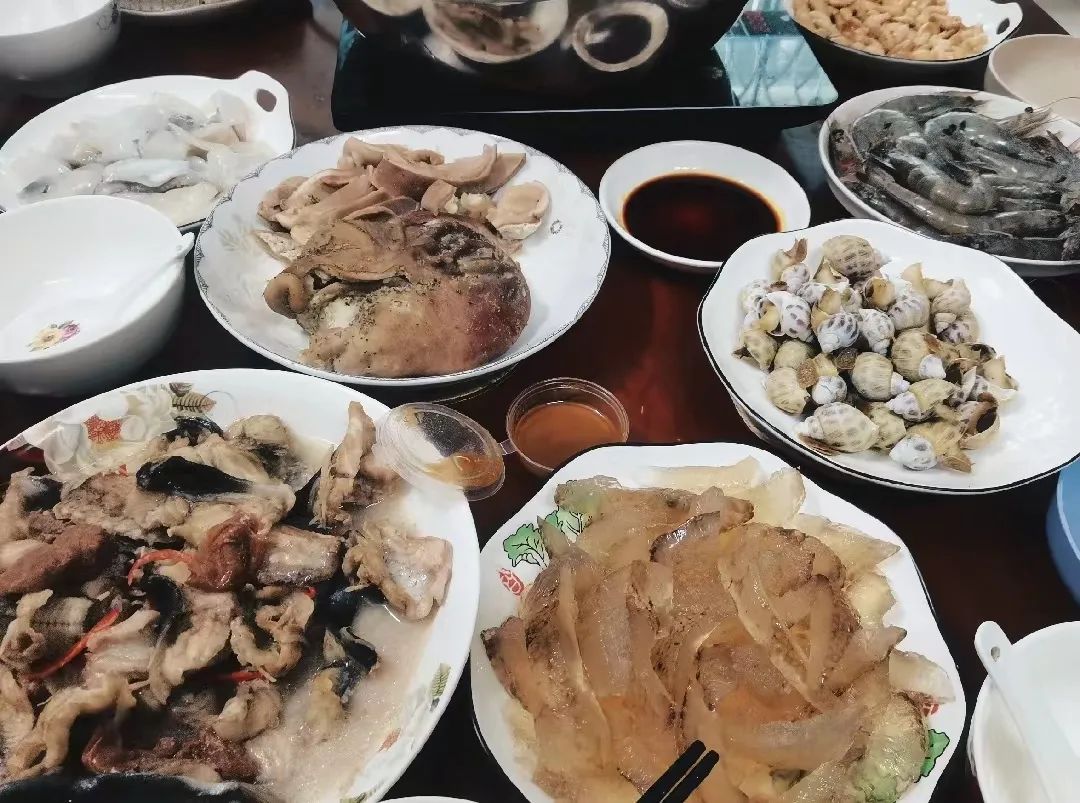 汕头市是典型的海滨城市。过年之际,是市场上海鲜产品最热销的时候。寒冷的过年夜,一家人围炉而坐,整整齐齐,热腾腾的骨汤锅&番茄锅里烫着新鲜的大虾、海参、墨鱼、鱼丸......一年的奔波都化在唇齿边的笑意里。