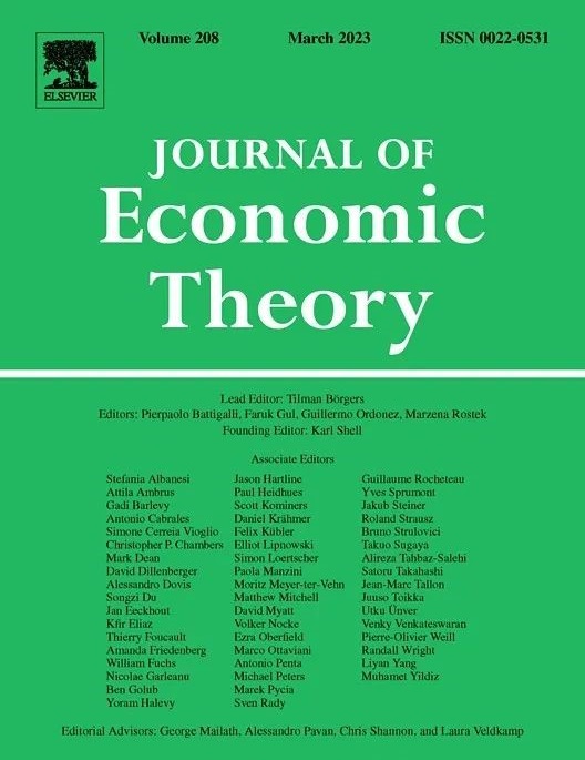 Journal of Economic Theory 创刊于1969年,是理论经济学领域最受关注的国际顶尖期刊,也是国际经济学界公认的九种核心期刊之一,其刊登论文主题包括机制设计、决策理论、宏观经济学、货币经济学等。