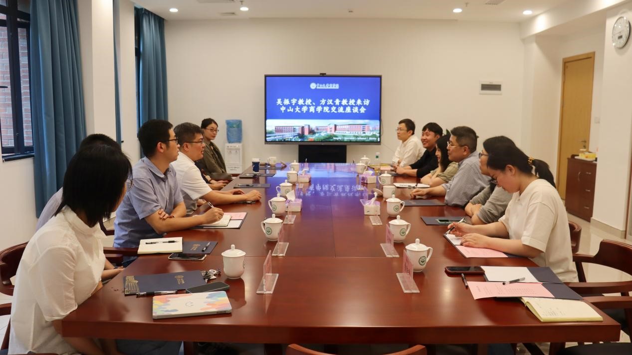 吴振宇教授和方汉青副教授对商学院的发展充满期待,他们结合个人学习生涯和研究经历,分享了各自在创业金融、创业研究和公司治理等领域的研究成果。随后,双方就国际交流、人才培养和科研合作展开交流。