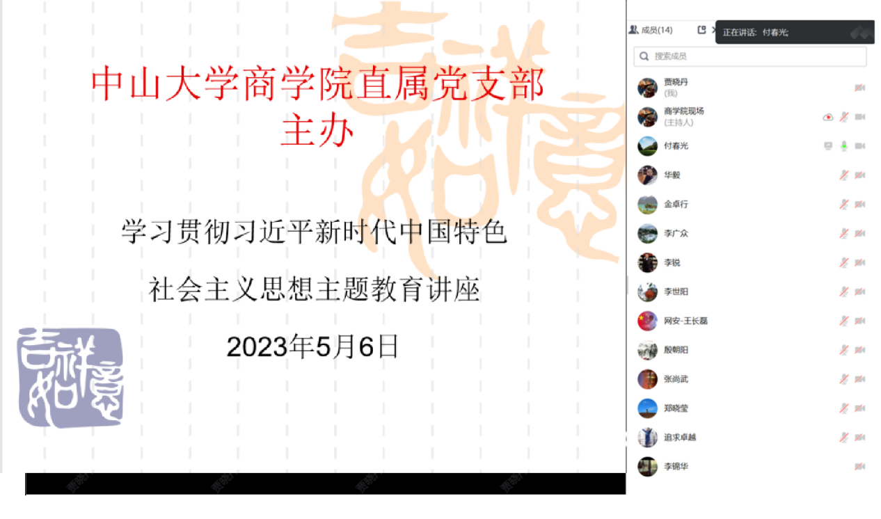 5月6日,商学院读书班第七期,邀请马克思主义学院付春光副教授以《习近平新时代中国特色社会主义思想概论》为题作线上辅导报告,与深圳校区部分直属党支部领导班子成员共同学习交流