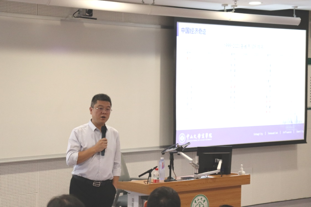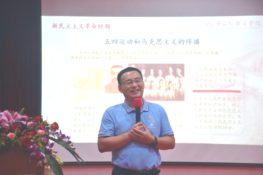 中山大学商学院“思政第一课”打破传统课堂限制,创新育人载体,丰富育人内涵,以新生入学教育为契机,以党史学习、国情教育为抓手,以常态化讲学为保障,学院领导班子积极履行思政教育第一责任人职责,帮助学生坚定理想信念,增强政治素质,引导新生扣好大学第一粒扣子,发挥铸魂育人的重要作用。
