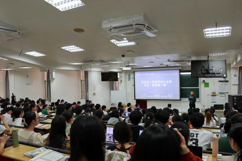 3月29日下午,商学院2024年春季学期书记“思政第一课”暨本科一年级学生大会在广州校区南校园举行。商学院直属党支部书记龙长春、副书记张新楠、2023级本科生班主任张睿副教授、詹钥凇助理教授、薛付婧助理教授及全体大一学生共同参会。