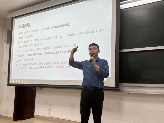 随后,张睿副教授就升学深造和学校推荐免试攻读研究生的政策介绍。张睿为同学们细致分析保研考研、境外留学等不同升学方向的要求,传授部分高年级学生的升学经验,鼓励同学们尽早树立目标,做好学业规划。