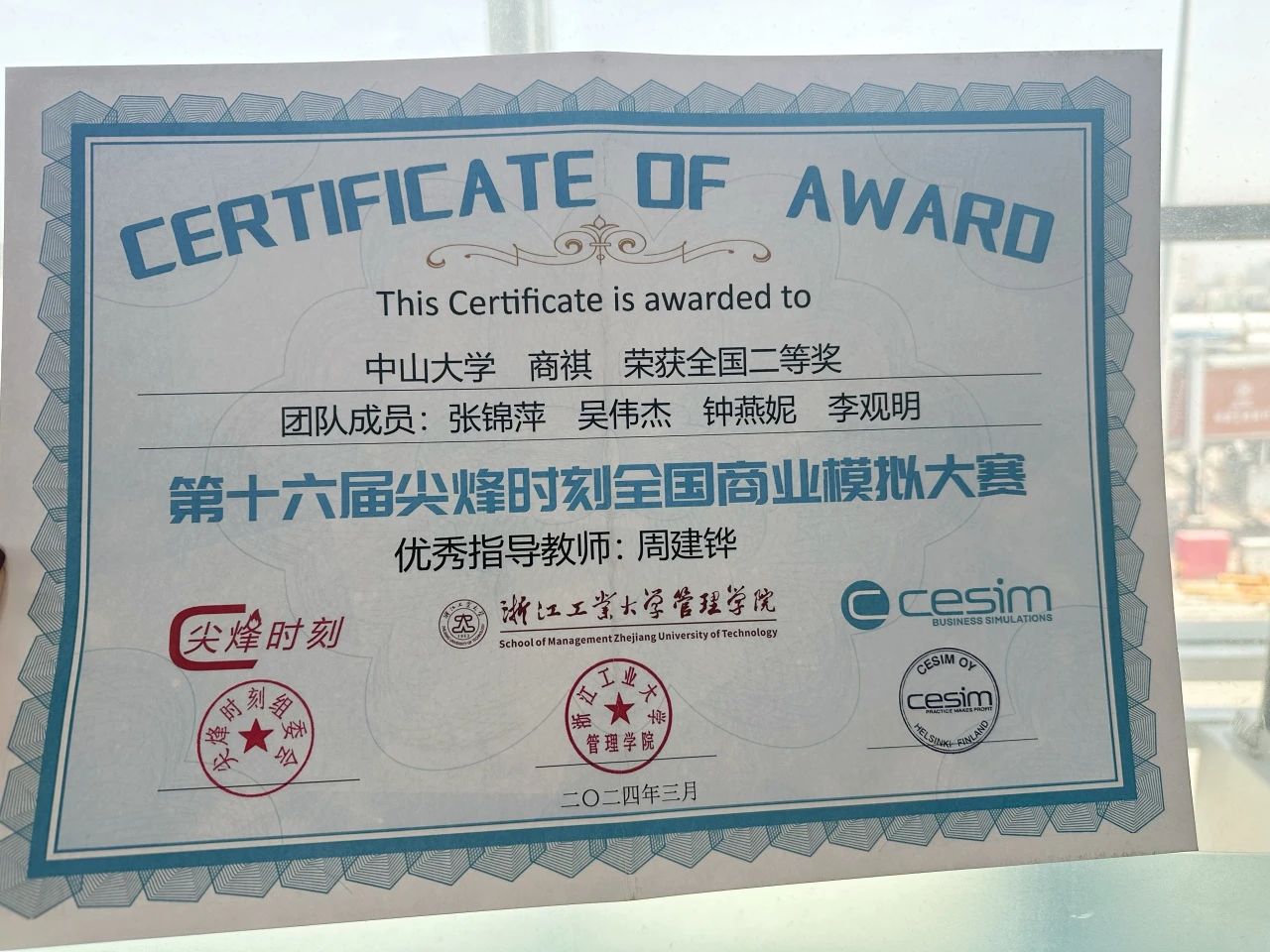 3月29日至31日,第十六届“尖烽时刻”全国商业模拟大赛总决赛在浙江杭州举行。我院MBA学生队伍“商祺”首次代表学院出赛,最终获得总决赛二等奖的好成绩。