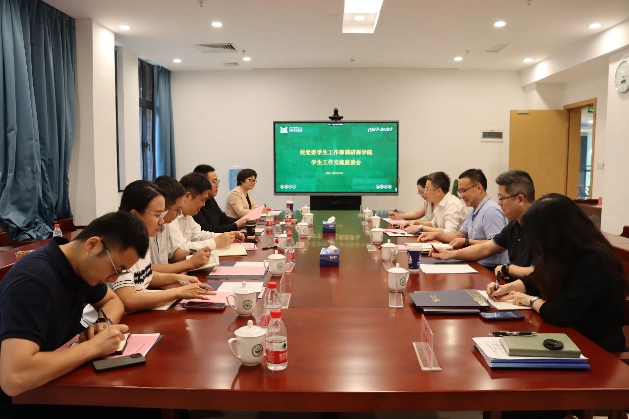 4月12日,学校党委学生工作部部长靳祥鹏,党委学生工作部副部长、学生工作管理处处长曲翔,学生工作管理处副处长刘佳、王莉娜等一行到商学院调研。商学院院长李广众教授,直属党支部书记龙长春,副书记张新楠和学院辅导员班主任代表参与本次调研会。