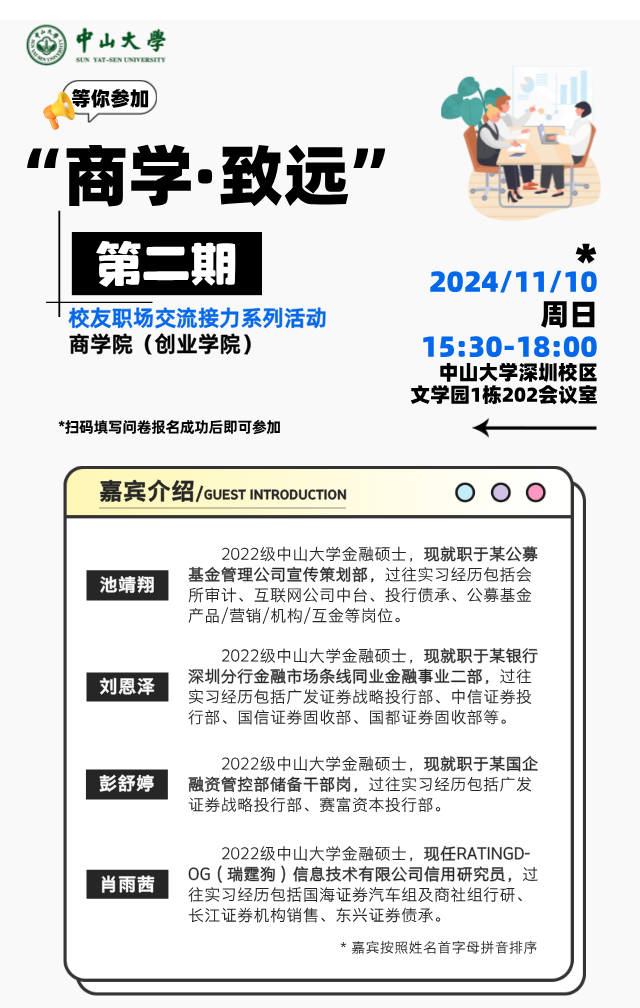 有意向参加的同学请扫码报名!期待在校友职场交流接力系列活动中与同学们相遇~