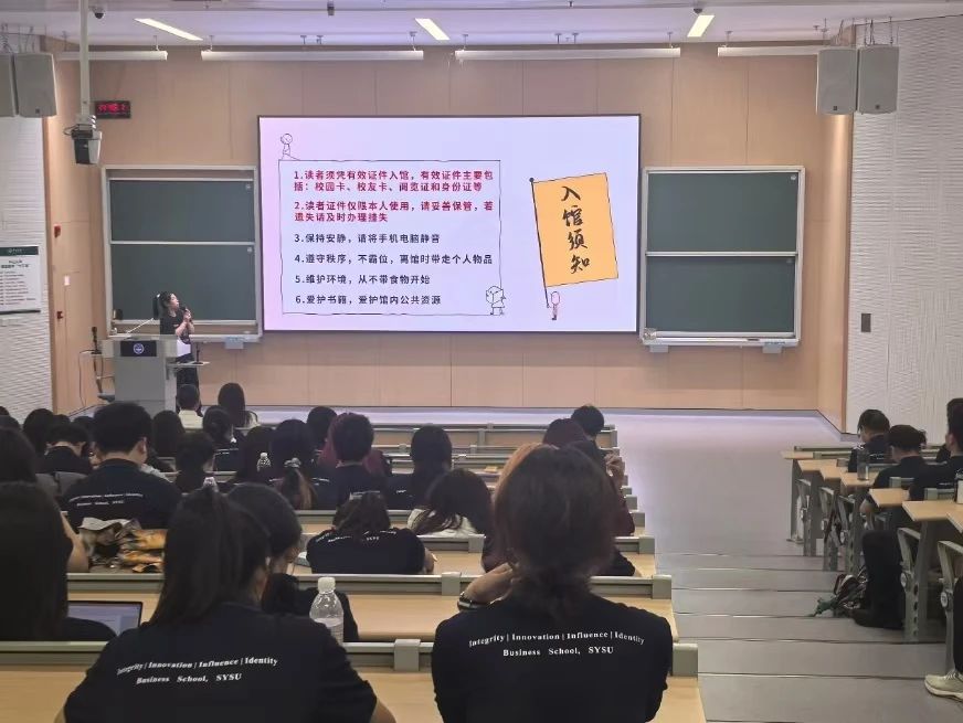 中山大学图书馆杨静老师为同学们开展图书馆资源与利用培训。图书馆书籍及信息资源作为学术研究的重要依据,对于学生的日常学习和视野拓展具有重要意义。杨静老师从图书馆馆藏资源、借阅规则及资源使用方式等方面为同学们展开介绍,她现场演示书籍查询流程和图书馆设备、数据库使用方式等进行详细讲解。杨静鼓励同学们积极使用图书馆资源,让它成为知识探索和精神成长的伙伴。