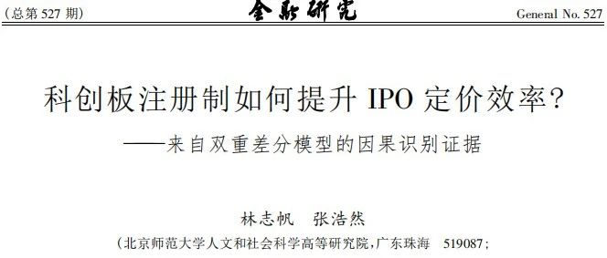 林志帆,张浩然:《科创板注册制如何提升IPO定价效率?——来自双重差分模型的因果识别证据》,《金融研究》,2024年第5期,第188-206页。