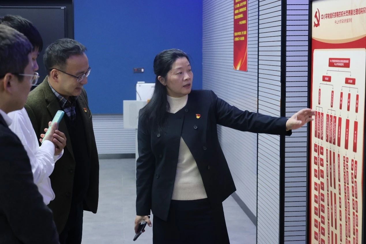 会后,行政教辅教职工党支部一行在龙长春带领下来到中山大学深圳附属学校进行交流学习。中山大学深圳附属教育集团党委书记罗灿对学院一行的到来表示热烈欢迎,并从办学理念与愿景、学校现状、学生发展、教师发展、未来规划等方面详细介绍了中山大学深圳附属教育集团的基本情况,重点介绍了学校的课程体系建设和学生综合素质培养与全面发展的情况。