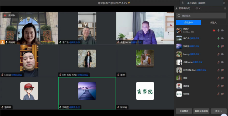 1月25日,李广众院长、龙长春书记、郑晓莹副院长、张新楠副书记通过腾讯会议的方式向学院外籍及港澳台教职工致以美好的新春祝福。李广众院长表示,海外人才是学院各项事业发展的重要资源和支撑,学院人才培养及学科建设取得的成绩都离不开海外人才的努力付出和贡献,学院始终关心大家的生活,希望大家通过亲历春节,感受、认识和弘扬中国传统文化。