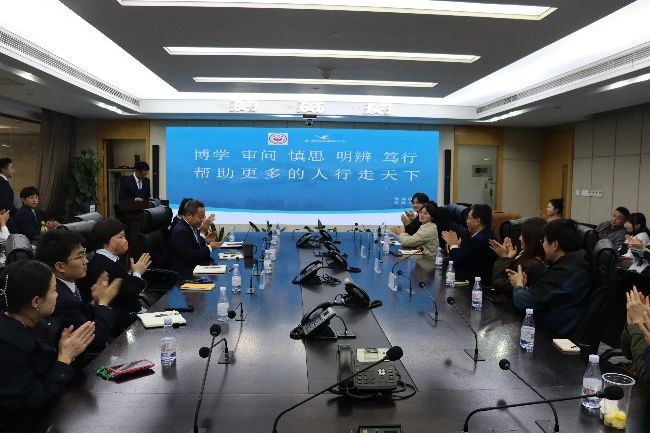 师生一行首先参观了走进厦航运控大厅,了解中心各单位的工作内容、厦航当日航班运行概况以及自主研发系统应用。随后,欧阳仁杰先生深入分析民航业行业特征,并以“精细化运行管理”为主题,详细介绍了厦航的发展历史、运行体系及企业文化等。之后的交流环节,双方围绕商业模式、运行体系、服务品质等话题展开了深入讨论。