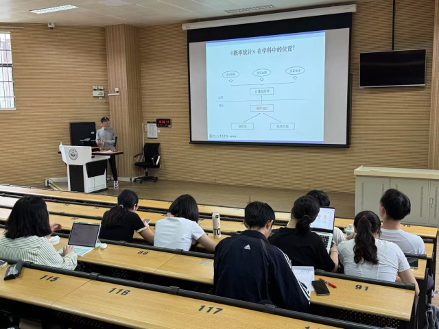 赵家悦以公理化体系为切入点,系统梳理概率统计知识框架。课程分为概率论与数理统计两大模块:前者重点解析随机变量定义、分布函数等基础概念,突出随机变量在回归分析中的应用;后者通过参数估计与假设检验构建“样本推断总体”的统计思维。通过框架图展示,清晰展现概率统计作为商科数理根基的核心地位——既是计量经济学的方法论源头,又是连接实证金融、会计研究的桥梁。结合商业数据分析、投资风控等案例,赵家悦强调概率思维在数据科学时代的关键价值,建议同学们着重培养抽象建模能力,注重概率论与统计学的知识衔接,掌握矩阵思维以理解现代计量方法。