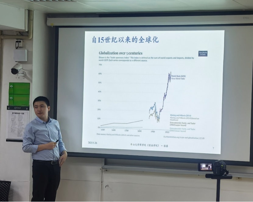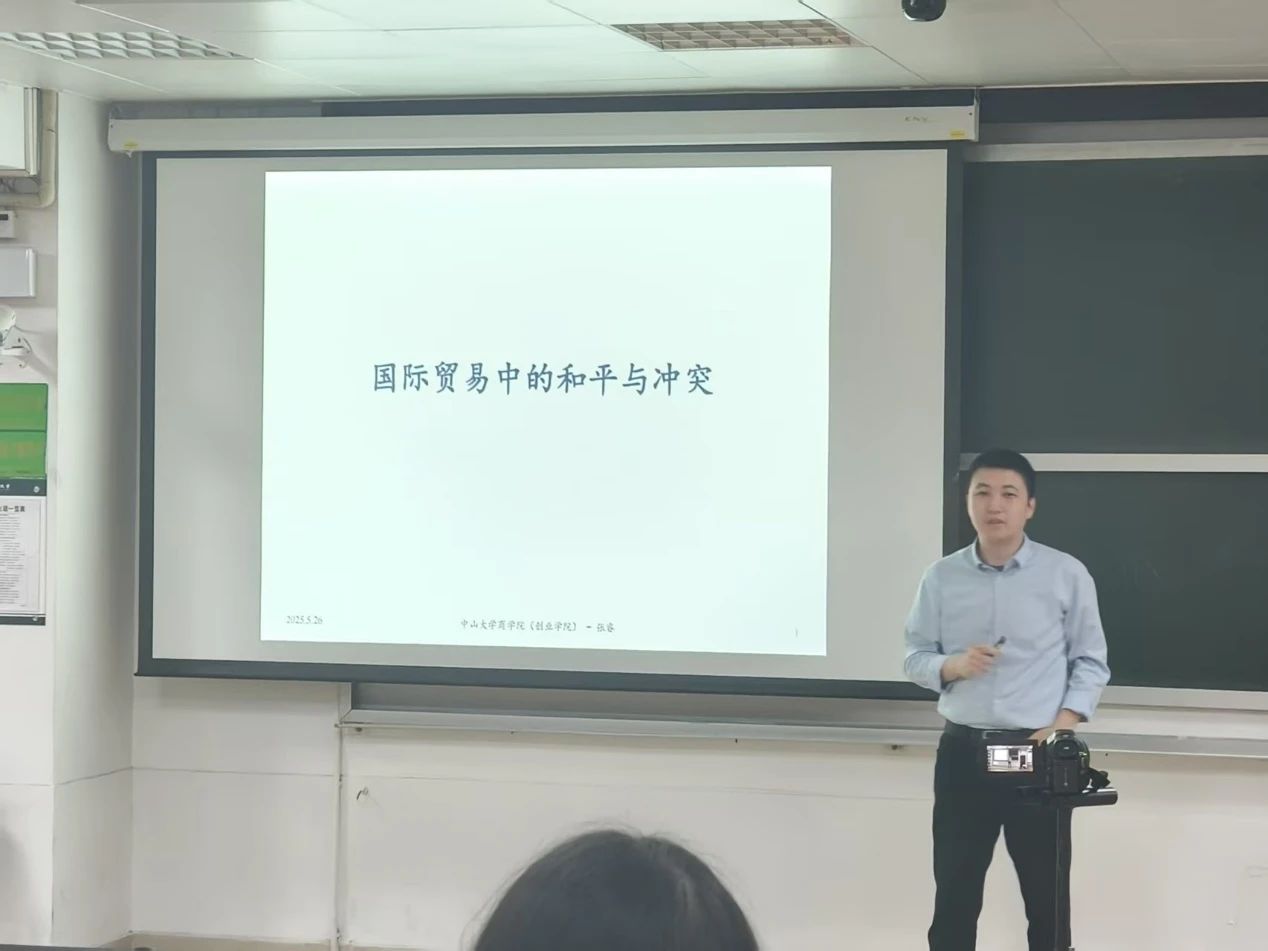 2025年5月27日,中山大学商学院副教授张睿以《国际贸易中的和平与冲突》为题,带来一场全球化进程中合作与博弈的解析。讲座以理论为基、数据为脉,揭示贸易如何成为国家间利益交织的纽带。
