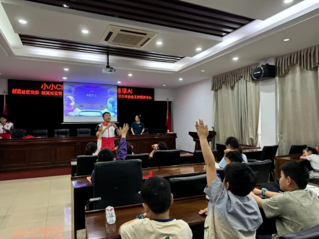 聚焦AI技术如何重塑商业未来,商学院志愿者通过形象的比喻和真实案例讲解,并借助动画演示和互动问答,阐明AI协同下的商业远景,启发小朋友们对于技术与商业融合的雏形思维。