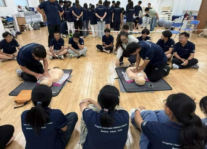 在心肺复苏培训课上,同学们围着模拟人教具,认真练习每一个动作。当亲手操作AED、规范完成胸外按压时,突然懂得‘生命至上’不是一句口号。多掌握一项急救技能,就多一份‘敢救、会救’的底气。这项技能让同学们深刻体会生命的脆弱与宝贵,更让‘社会责任感’有了具体的模样。