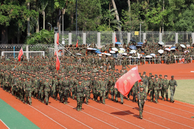 成果验收日,英东体育场的阳光格外耀眼——军训队列考核如期举行,这是对十八日军训的成效检验,更是对“成长”的最好证明。