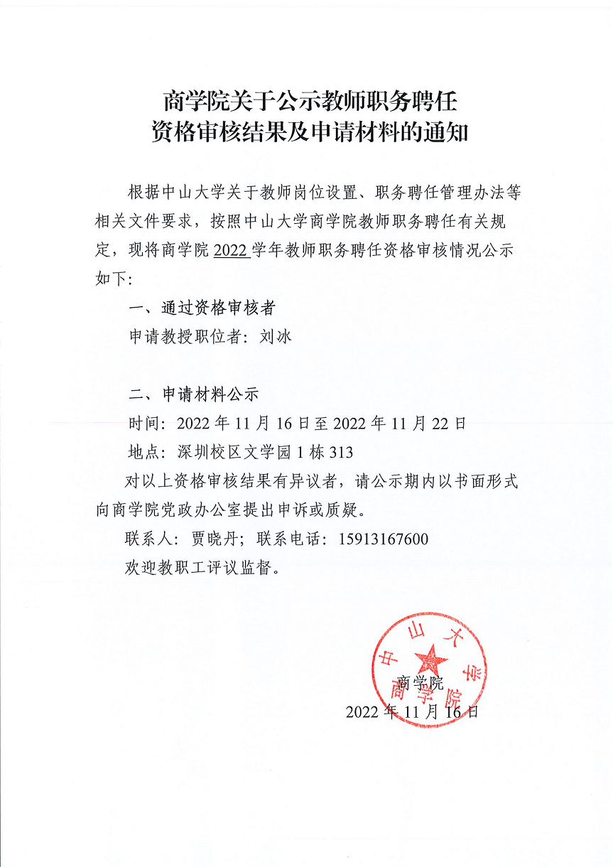 商学院关于公示教师职务聘任资格审核结果及申请材料的通知