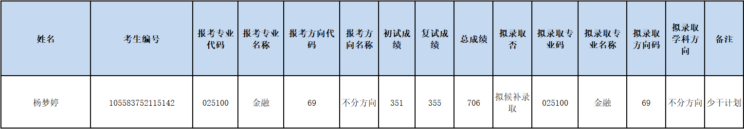 我院新增1个少干(普通)计划(全日制专硕),根据《中山大学商学院2023年硕士研究生复试录取方案》,增补拟录取名单公示如下:
