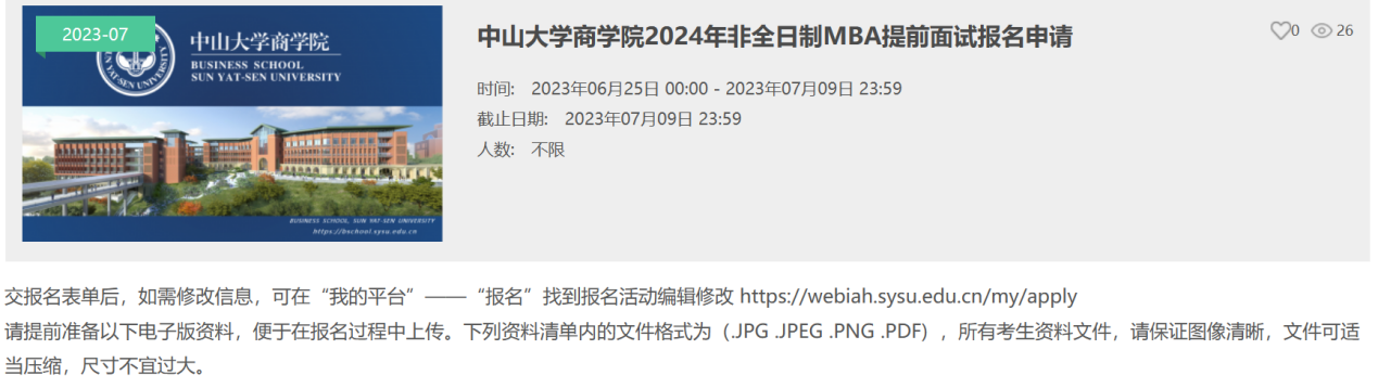 中山大学商学院2024年MBA招生提前面试申请通道开放