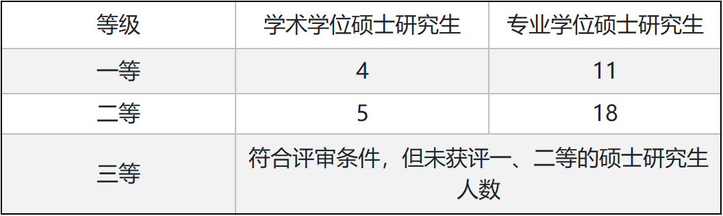2023学年硕士研究生奖助金评审名额: