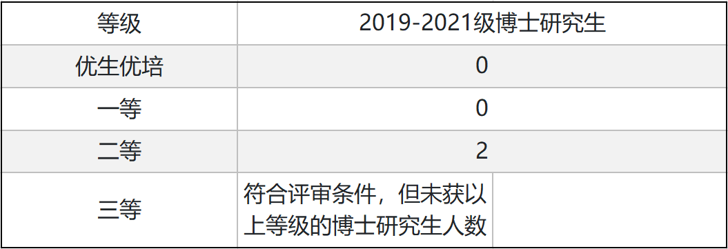 2023学年2019-2021级博士研究生奖助金评审名额: