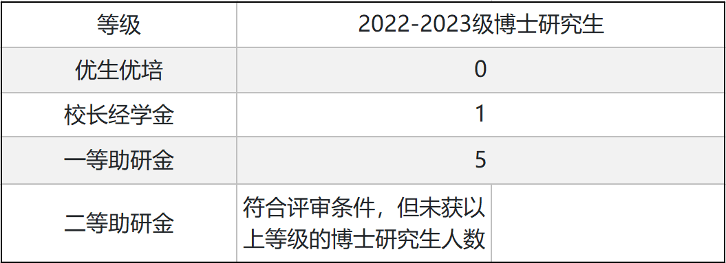 2023学年2022-2023级博士研究生奖助金评审名额:
