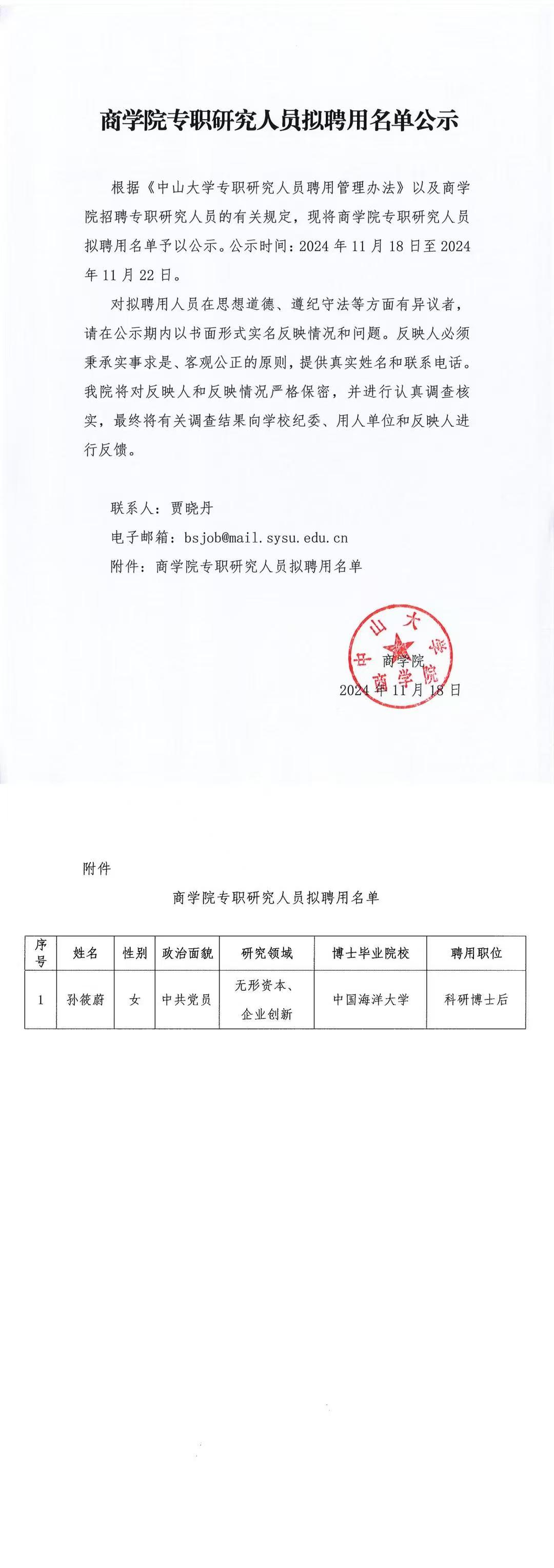 商学院专职研究人员拟聘用名单公示