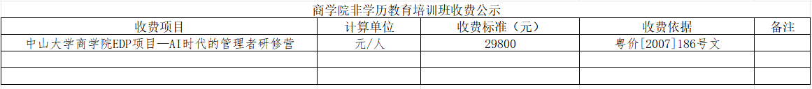 中山大学商学院EDP项目一AI时代的管理者研修营收费标准公示
