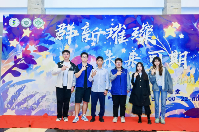 在迎新晚会现场(右三)