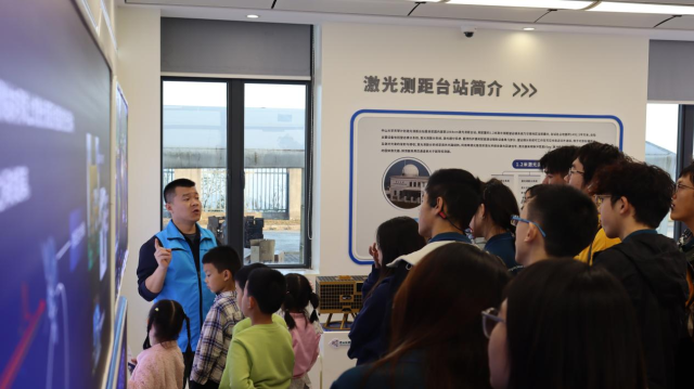 随后,师生乘车前往凤凰山顶的天琴测距台站。工作人员介绍了天琴计划“0123”的技术路线、天琴测距站的建设历程以及天琴计划取得的阶段性成果,让师生对天琴计划有了全面直观的认识。随着测距台站穹顶缓缓打开,师生们近距离观察到激光测距望远镜,它形似竖琴,听天籁之音,得名“天琴”。天琴计划的推动将使中山大学将成为国际上引力波探测与空间精密测量领域的学术研究重镇之一,并成为推动后续一系列空间精密测量物理实验的研究基地。