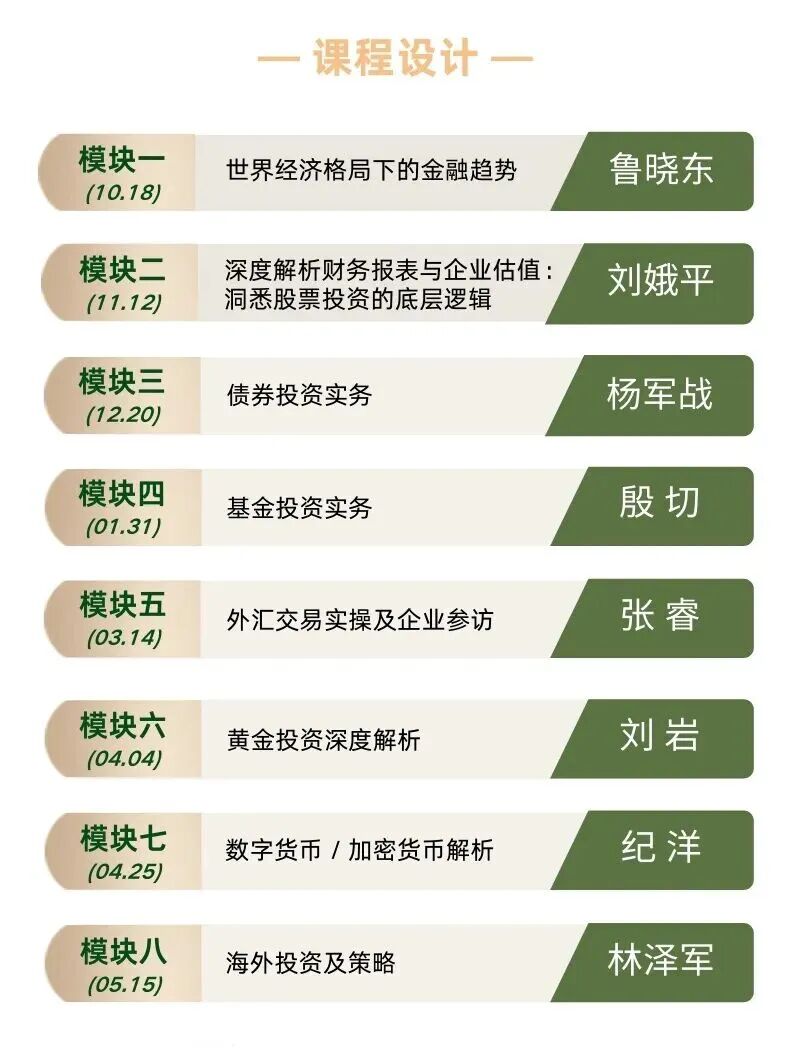 即日起,「环球投资策略与风险管理研修班」招生通道正式开启,名额有限,先到先得。
